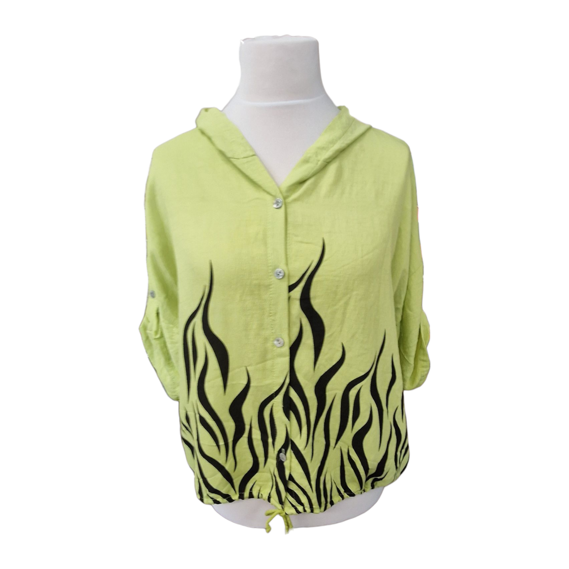 Short Sleeve Hooded Button Up Top
